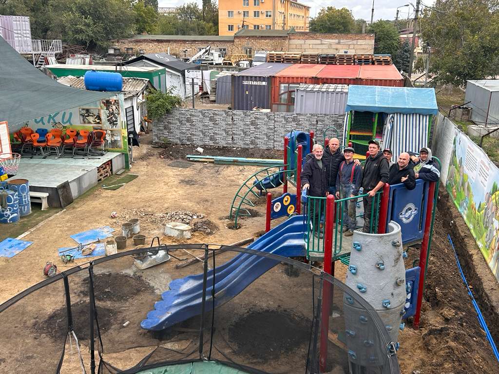 In Ukraine, we partnered with ReLoad Love and Open Door Foundation to build three playgrounds—visible signs of hope amid ongoing conflict. The builds took place at Word of Life Camp near Kyiv, in Poltava with Bread of Life Church, and in Odessa with New Life Mission Church and Rescue Mission. Fittingly, each partner carries “life” in its name—a powerful contrast to the devastation surrounding them.